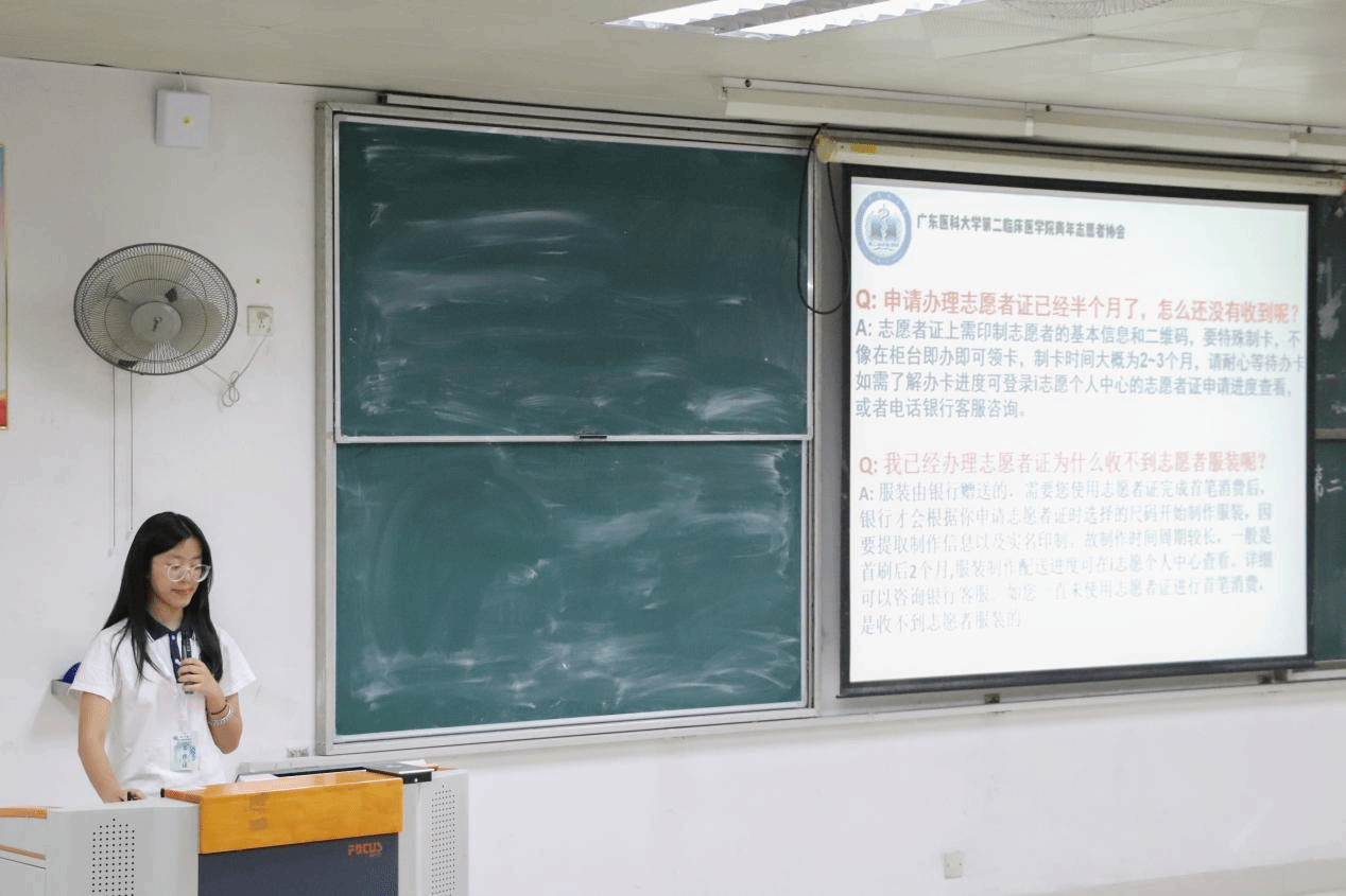 随后,志愿者代表2024级口腔医学专业的陈远岚同学,分享了她的服务心得,激发了新成员参与志愿的热情与动力。
