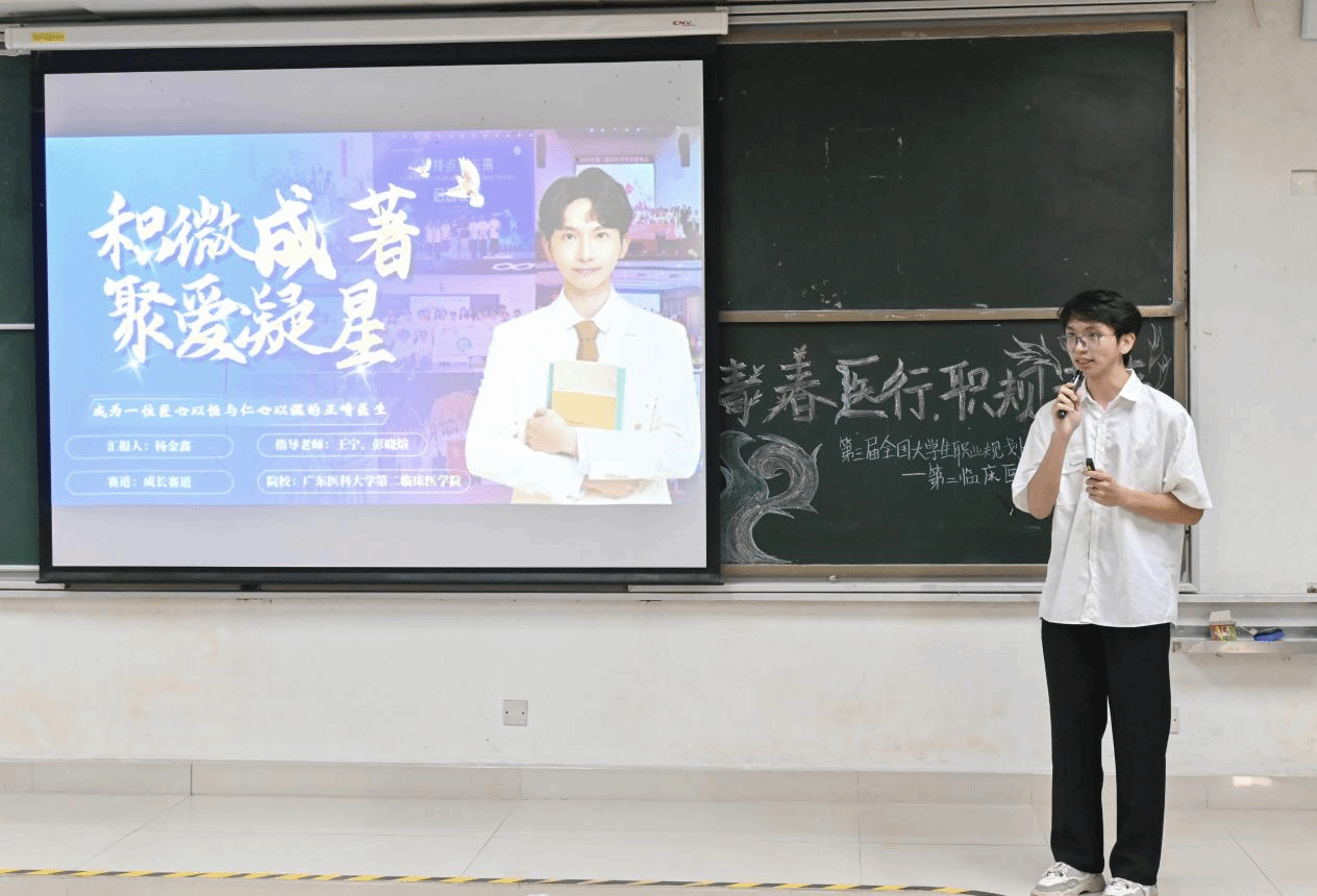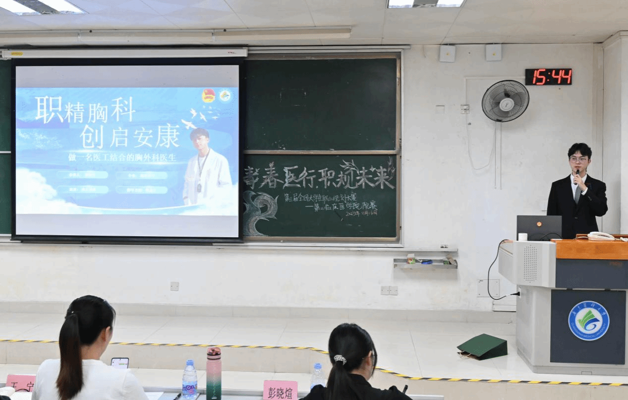 比赛现场气氛热烈,选手们通过个人陈述和PPT展示阐述职业发展规划。从口腔科医师到口腔数字化工程师,从基层全科医生,再到医工融合的胸外科医生,选手们的职业梦想多元而具体,紧贴医疗卫生行业发展需求,展现了医学生视野开阔、理想远大的精神风貌。