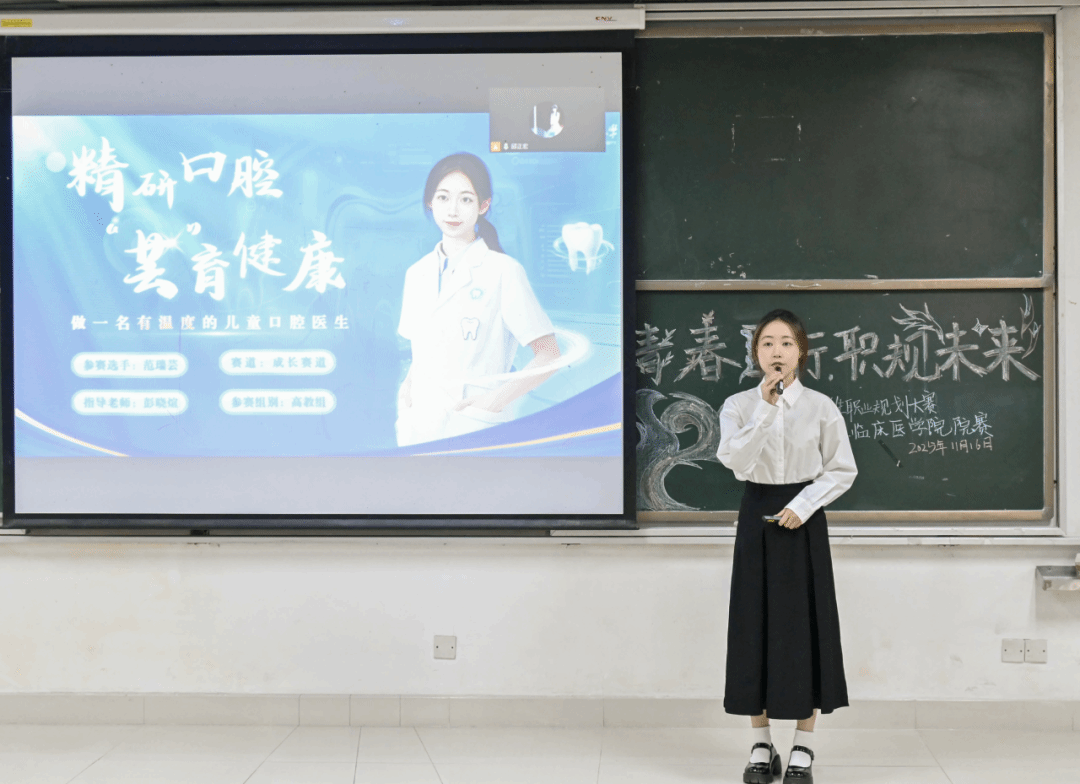 经过激烈角逐,综合陈述与答辩环节所展现的逻辑思维与职业潜质,两位选手脱颖而出。在“成长赛道”中,2023级口腔医学专业范瑞芸同学凭借其对儿童口腔医学事业的深厚情怀和扎实的临床技能储备,一举斩获金奖。而在“就业赛道”中,2021级口腔医学专业卓玲金同学凭借对牙体牙髓科的清晰定位,以及对“技术、沟通、匠心”核心特质的深刻理解,荣获金奖。