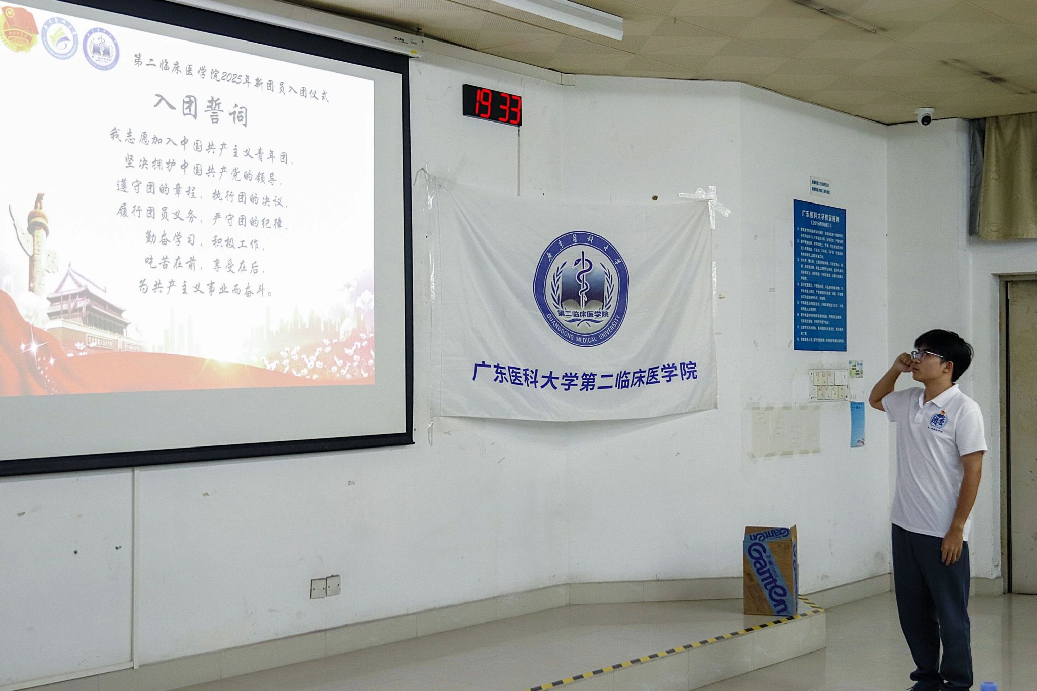 新团员真挚的发言,让我们看到青春的赤诚与向往。随后,老团员代表23级口腔医学杨金鑫同学结合自身威廉英国及实践经历分享成长感悟并对新团员表达了殷切期望,他表示作为一名共青团员,要永远保持共青团员的光荣称号,让团徽在胸前永远闪光。
