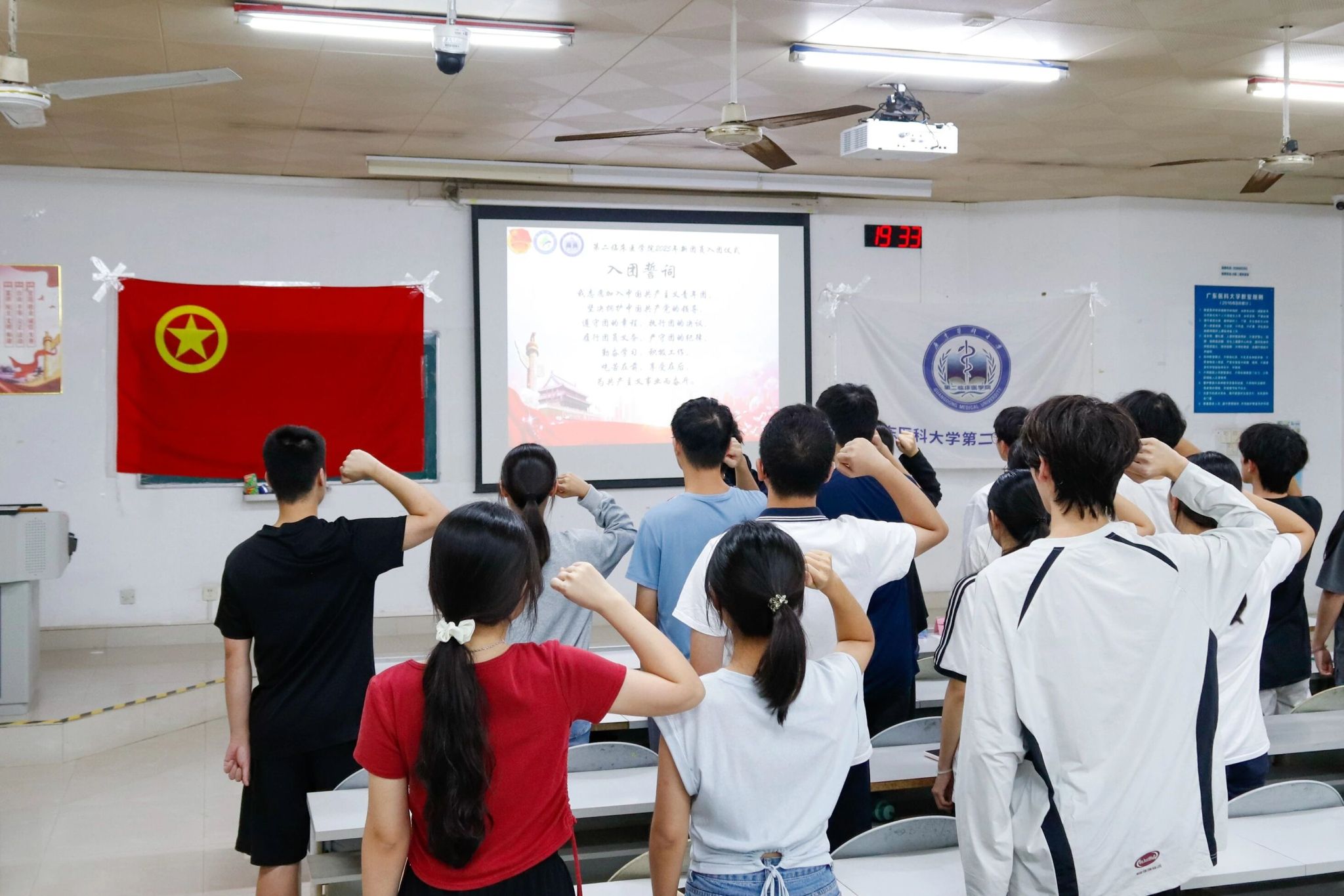 随后由学院团委组织部副部长曾维安同学带领新团员庄严宣誓:“我志愿加入中国共产主义青年团,坚决拥护中国共产党的领导……”铿锵有力的誓言承载着坚定的信仰与无悔的承诺,激发了全体团员的光荣感和责任感。