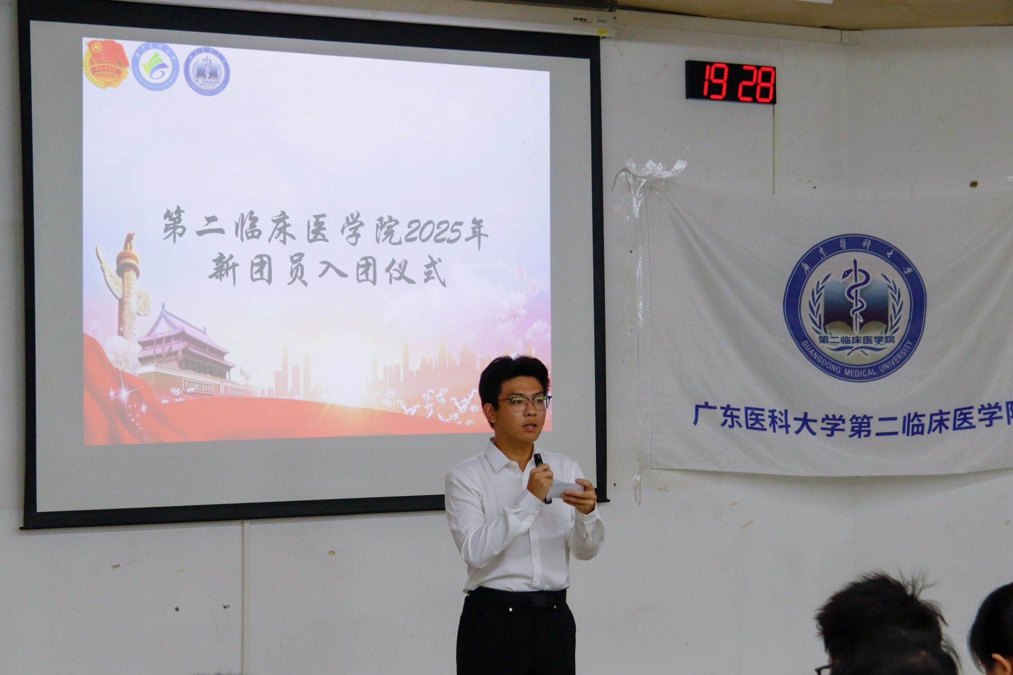 最后,二临团委副书记李明娴老师发表讲话。她指出:入团不仅仅是政治身份的升华,更应该是医学追求和我们青春理想的同频共振。同时她也对新团员提出了三点希望:一是要坚定理想信念,做志存高远的追光者;二是要锤炼过硬本领,做勤学笃行的实干者;三是要涵养医德医风,成长为德才兼备的医学人才。