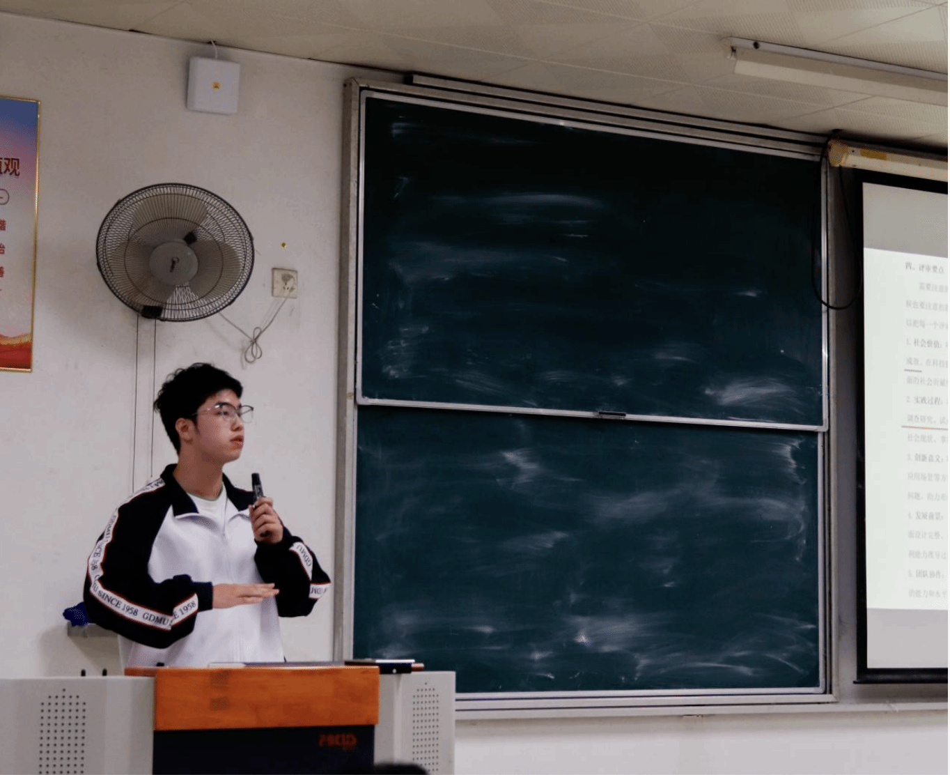 黄宪智同学结合自身经历对团队组建、会议高效和材料撰写作了进一步延伸,指出组队成员应具备文案撰写、PPT制作和答辩展示的能力,同时应具有积极的参赛热情,避免后期浑水摸鱼拖慢进度;其次,他指出团队应每周开展会议对项目目前所存在的问题进行讨论并加以完善;在材料撰写方面,他讲到应遵循精简精准的原则,使用图表等数据代替繁杂的文字点明结论,让评委一眼抓住重点。