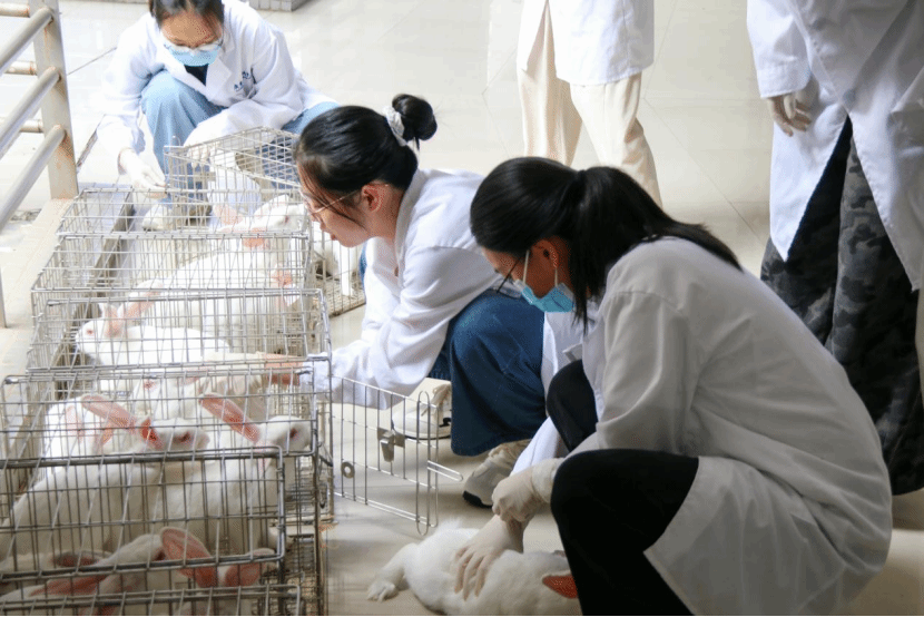 经过前期报名、初赛选拔和答疑辅导,共有48支队伍脱颖而出,晋级决赛。项目为“家兔血压测定”,参赛队伍分批次在限定时间内完成操作。比赛中,同学们需严格遵守操作规程,并在实验结束后以人道主义方式妥善处置实验动物。若实验中途动物死亡,则立即终止比赛。最终,总分排名前12的队伍获得下午总决赛的入场券。