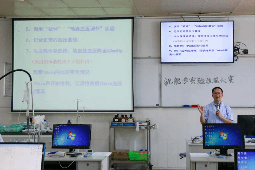 决赛正式开始,参赛者们认真有序地进行每一步实验操作。从家兔捉拿与称重,到耳缘静脉注射、气管插管、动脉插管……看着电脑显示屏上压力数值的正确走势,不少同学发出惊叹。即使有些队伍未能顺利按时完成实验,但每一位参赛者都在一步步实验操作中熟练了技能,进一步掌握了机能学知识。