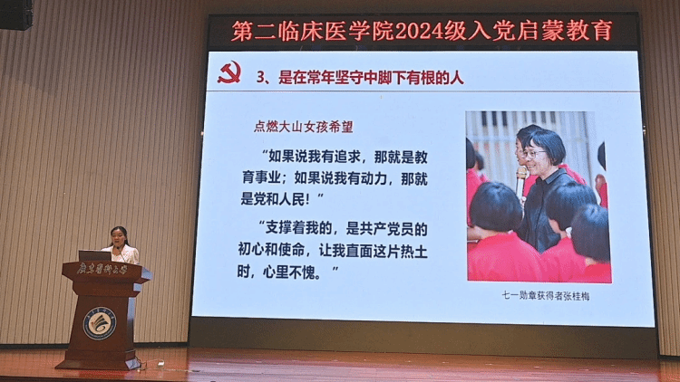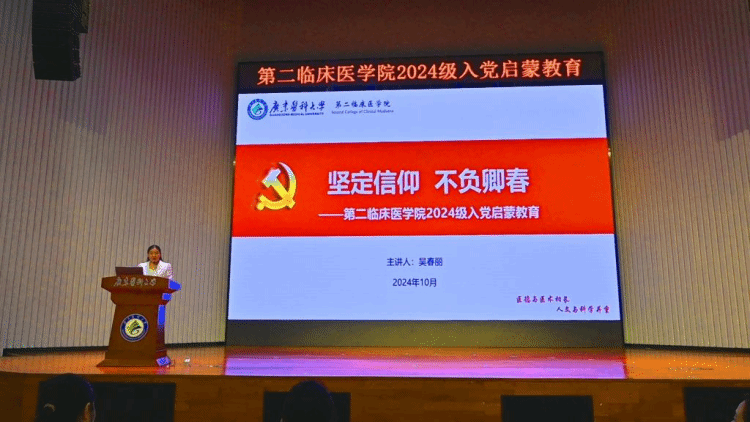 学院党委副书记吴春丽以“坚定信仰,不负卿春”为主题,为2024级全体新生开展入党启蒙教育。