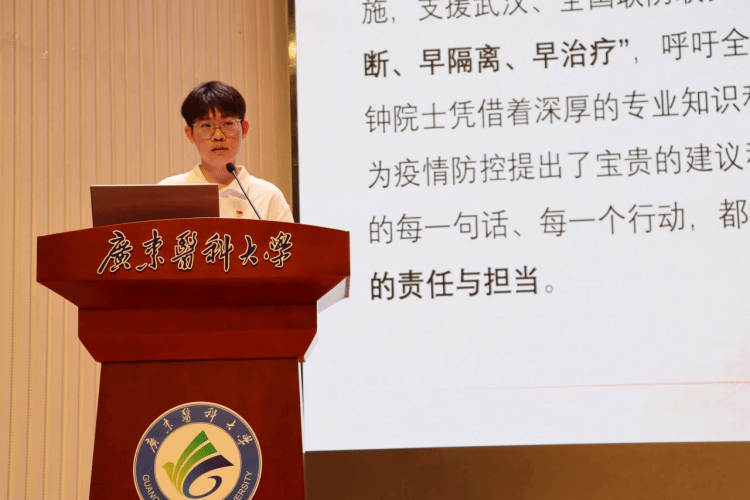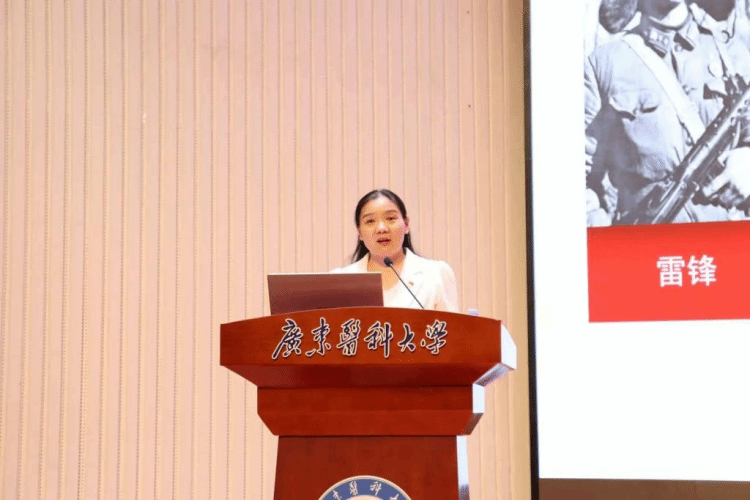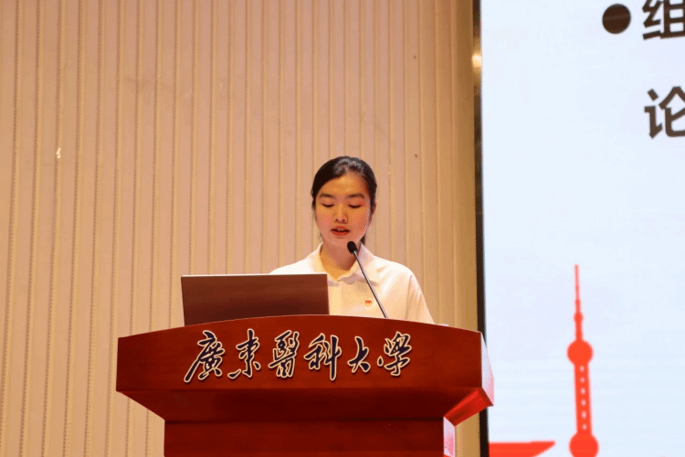 2022级党员代表、校级十佳团支书张书琪同学结合自己的团支书经历讲述了余家军医生,描述了优秀共产党员的形象:坚守初心、勇于担当。她加入中国共产党是因为党员代表着责任和使命,成为党员对她而言,意味着更高的要求和更大的责任,她将党的理念内化于心、外化于行。