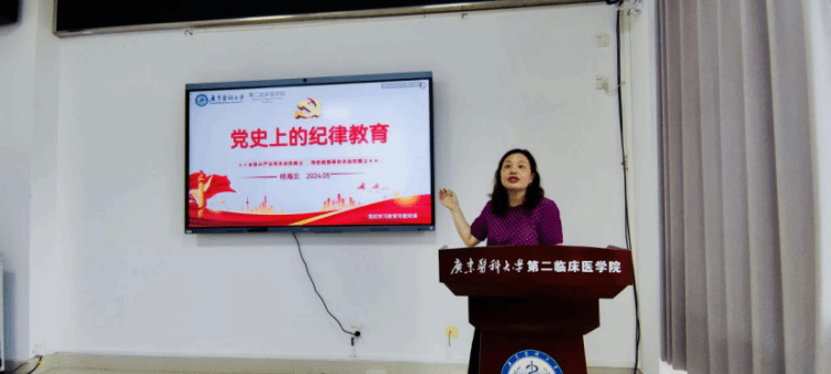 接着,学院党委杨海云书记为全体党员同志带来专题党课《党史上的纪律教育》。杨书记围绕新民主主义革命时期党的纪律建设的实践与探索、建国后党的纪律建设面临的严峻挑战、党的十八大以来纪律教育取得的显著效果三个方面,详细梳理和阐述了党的百年纪律教育史。她总结了新时代纪律教育的两大特点:一是把纪律教育渗透融汇于各种主题教育之中;二是以党内纪律法规作为纪律教育的重点。杨书记指出,中国共产党作为百年大党,在革命、建设、改革的各个历史时期特别是在重要历史节点,高度重视并适时开展对全党的纪律教育,保证了我们党不断从胜利走向胜利。她强调,纪律严明是党的光荣传统和独特优势,作为党员干部更要以坚定的信念,更高的要求投入到党的纪律学习教育中。