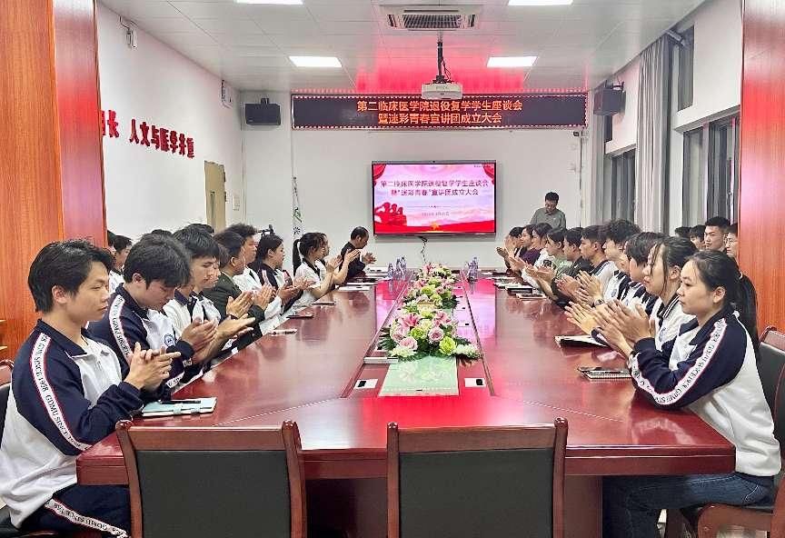 交流环节中,退役学生代表结合军旅经历畅谈感悟。2024级临床医学专业余雅欣同学分享了从军营重返校园的心路历程,表示将以“迎难而上、使命必达”的军人作风迎接医学挑战,并带动班级学风建设。在场师生围绕复学后的学业适应、班级融入、宣讲团建设等内容展开讨论与和交流,现场氛围热烈。