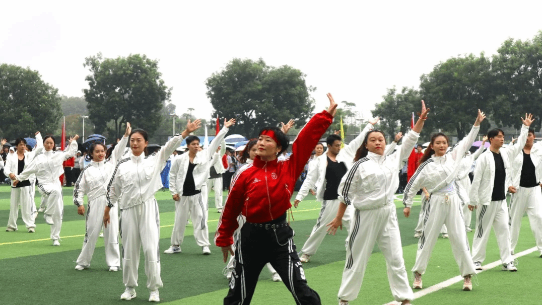 教职工表演展现别样风采,在开幕式表演中,我院温俊、潘馥璇、宋巧巧等老师参与到开场表演中,舞蹈欢脱灵动,节奏动感,随着音乐节奏的加快,教师们的舞步也变得更加轻盈矫健,仿佛青春的火焰在脚下燃烧。阳光下,他们的身影与彩旗交相辉映,成为运动场上最亮丽的一道风景线。舞蹈中流畅的动作和身体协调性凸显了舞者之间的默契和团队协作能力,这不仅是对舞蹈技巧的展示,更是团队精神的一种体现,也让场下观众深深感受到了舞蹈的魅力。