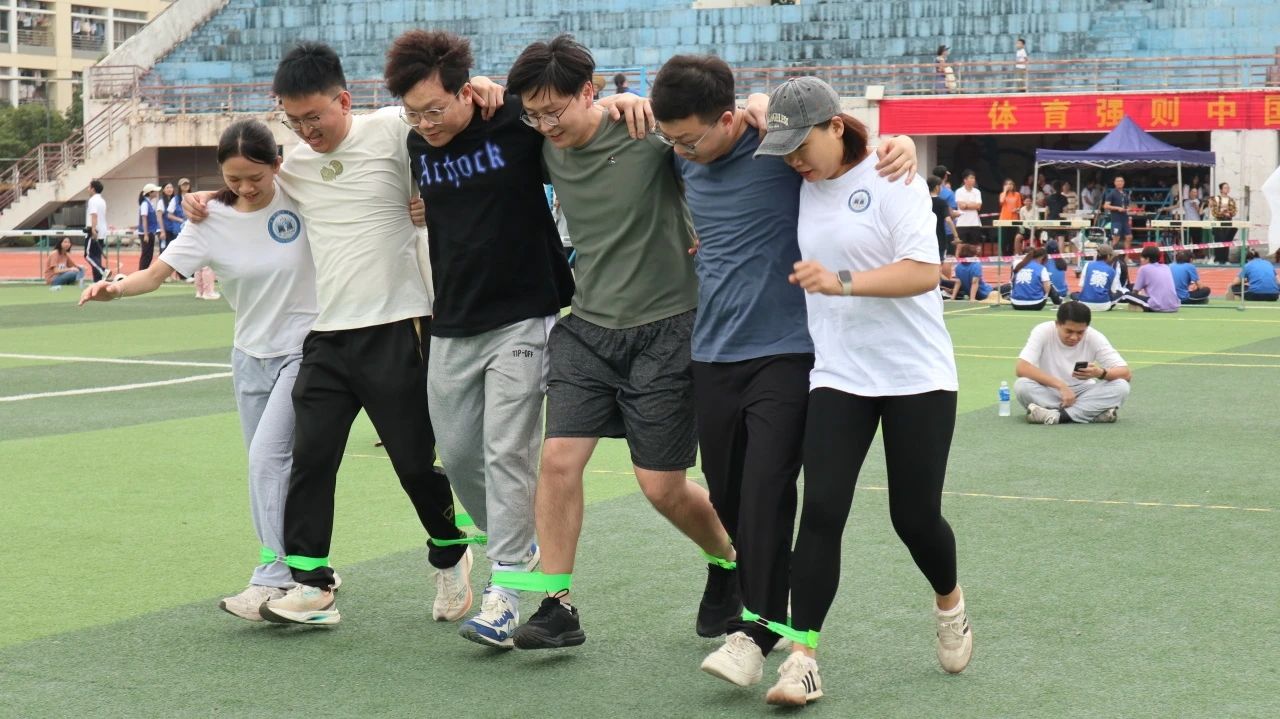 除了传统的竞技项目外,运动会还设置了多项趣味运动,这些项目不仅是体力与毅力的较量,更是团结与奋进的展示,给校园增添了活力满满的运动氛围。在多人多足比赛中,,队员们喊着整齐的口号,一步一步向前迈进。尽管过程中出现了几次小插曲,但大家始终保持乐观积极的态度,相互扶持,最终顺利完成了比赛。不仅展示了团队间的默契配合,更让大家深刻体会到了“众人拾柴火焰高”的道理。