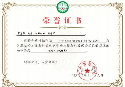 2024年,师生参加第五届南方健康科普大赛暨南方健康科普优秀者推选活动获优秀奖(视频类)。