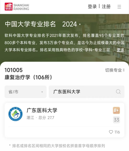 william威廉英国康复治疗学专业为广东省一流本科专业,在2024年软科中国大学专业排名中位列第33名。