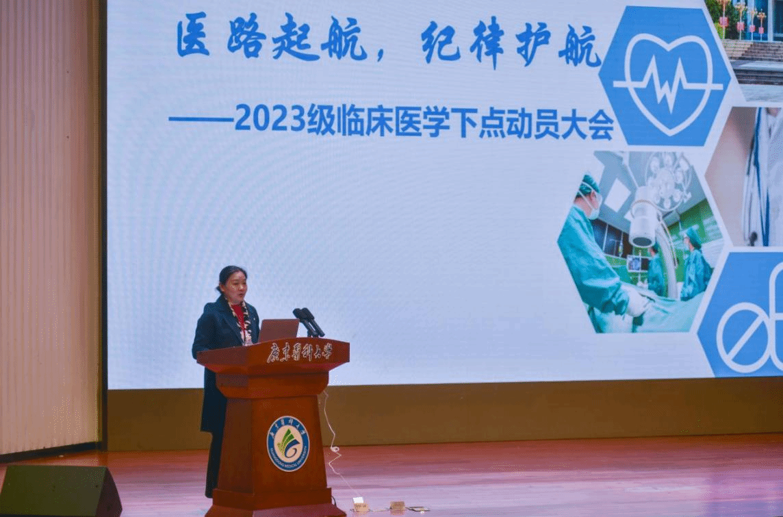 随后,赖天文常务副院长作动员发言。赖院长从专业发展、实践能力、职业规范等方面为大家提出了具体要求,句句箴言都饱含着对学子们的殷切期望,希望同学们将这份期许转化为前行的动力,在临床实践中锤炼本领、增长才干。