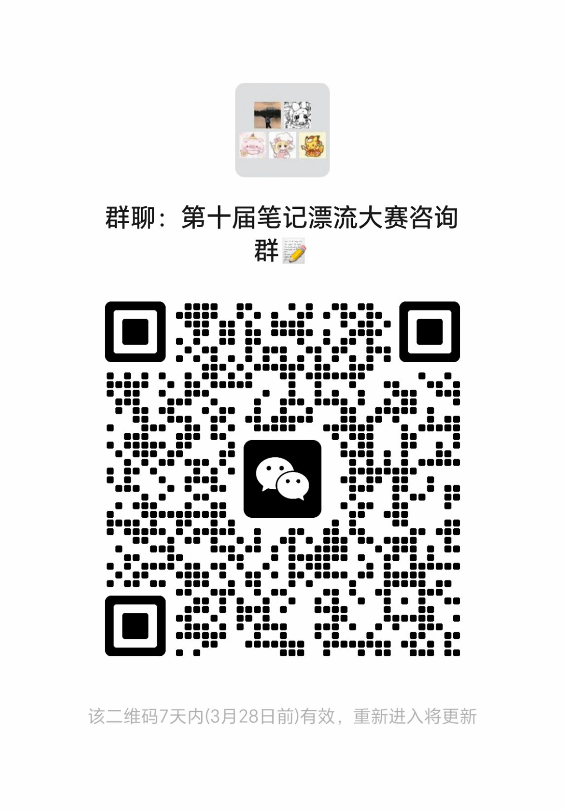 第十届笔记漂流大赛官方咨询群已搭建完毕!关于比赛所有疑问均可进群提问,工作人员会及时为大家逐一解答,敬请关注群内通知~