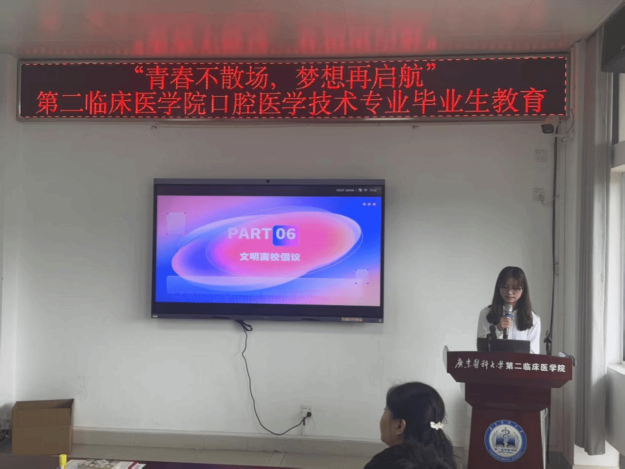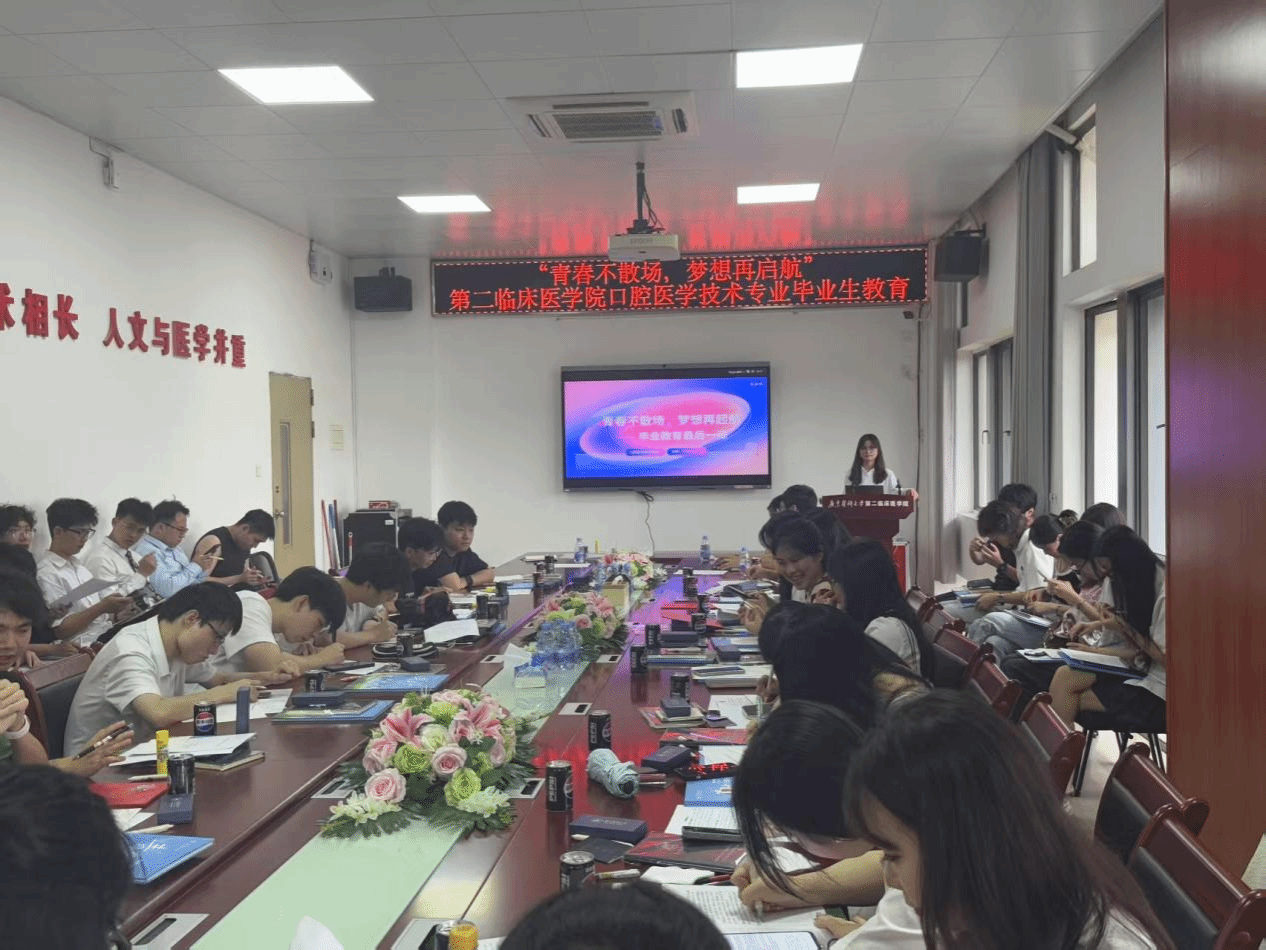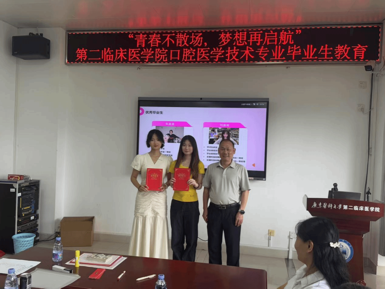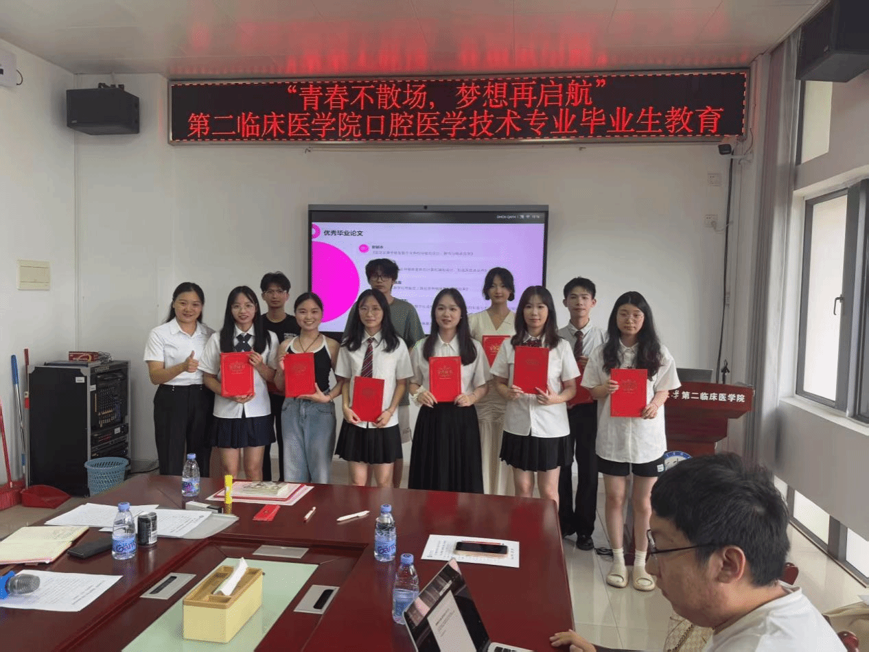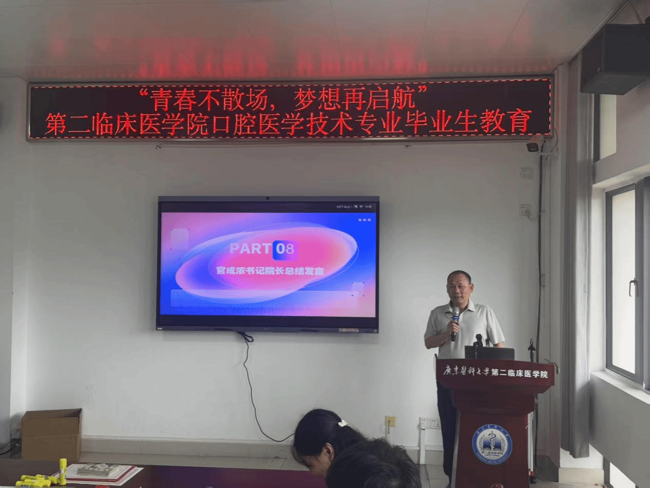 官成浓书记院长在总结发言中深情寄语毕业生:“口腔医学技术是精细与温度并存的专业,希望你们始终牢记‘立志立德、求真求精’的校训,以严谨态度对待工作,以关怀之心温暖患者。”他强调,无论未来从事技术研发还是临床服务,都要坚守对专业的热爱,保持团队协作精神,并欢迎同学们常回母校看看。
