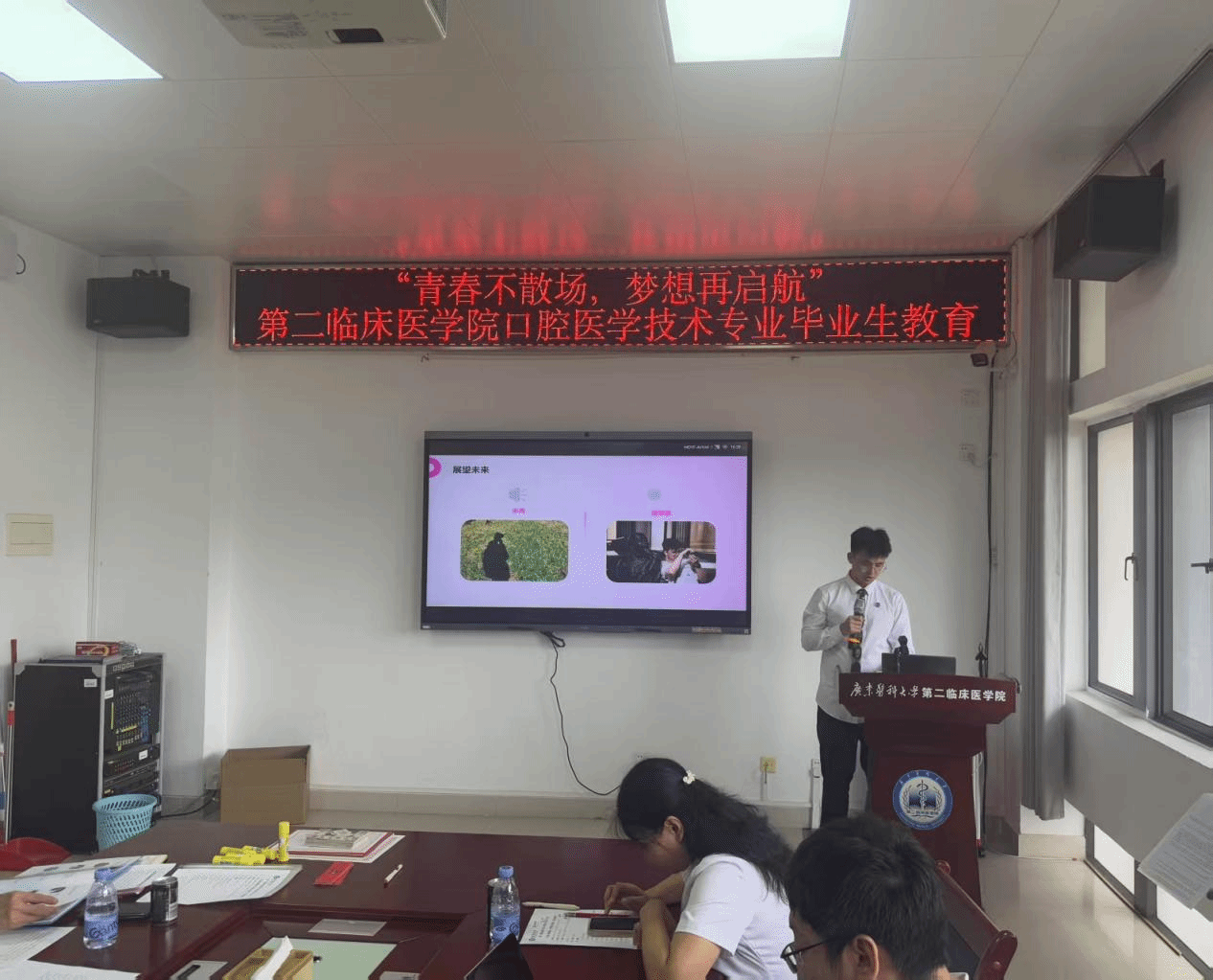 活动伊始,一段由辅导员精心剪辑的VCR带领大家重温了大学时光。画面中,入学时的懵懂、实验台上雕牙排牙的专注、校园活动中的欢笑,串联起口腔医学技术专业学子的独家记忆。“排牙、雕牙、设计、制作,这些专业训练的片段,是我们成长的轨迹。”这些画面不仅是对过去的回顾,更是对未来的激励,现场氛围温馨而感动。